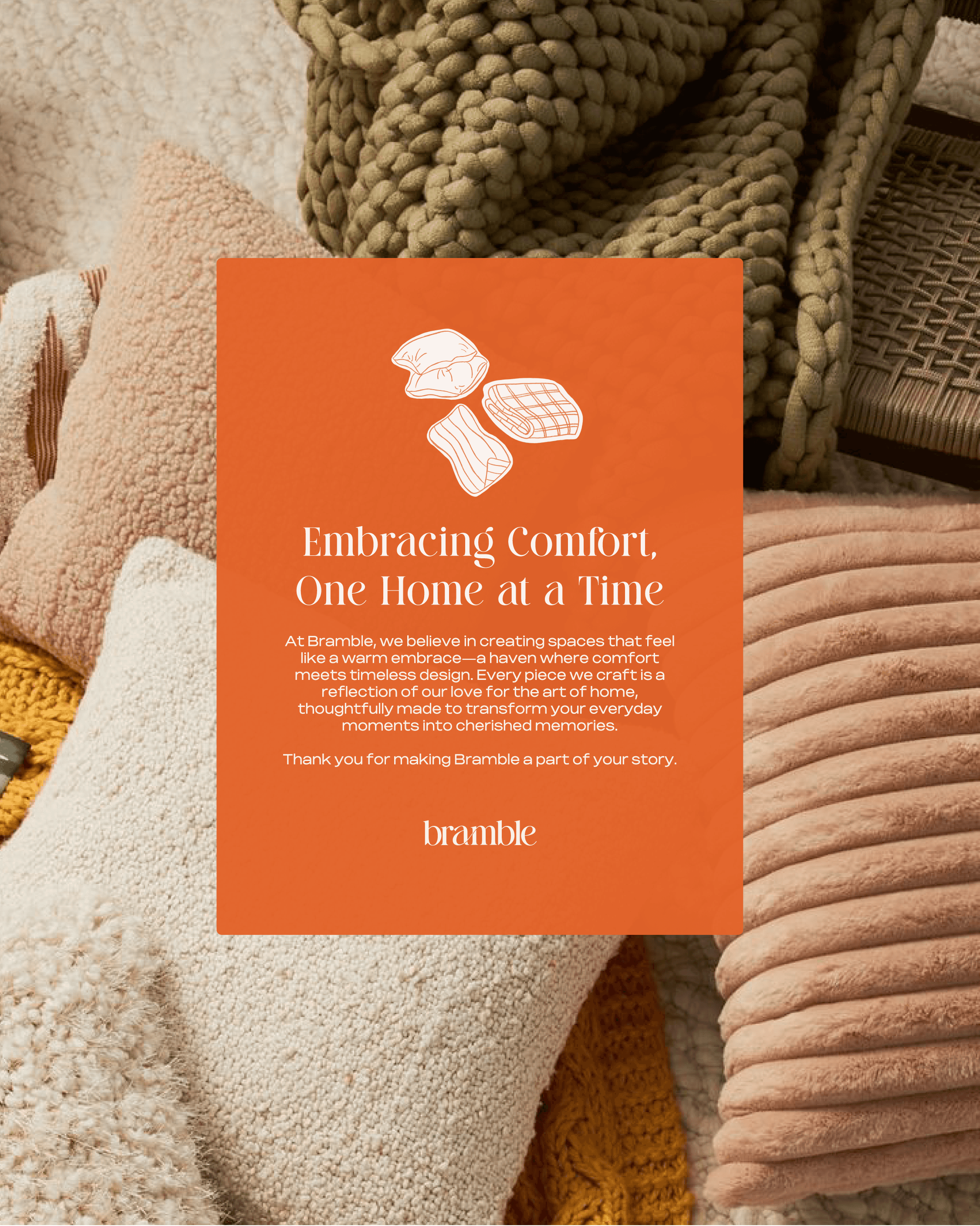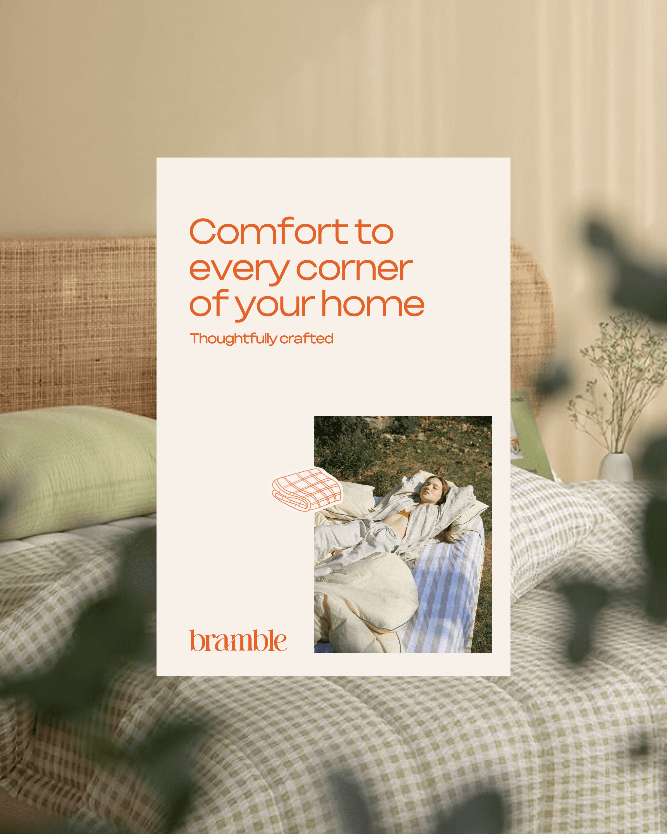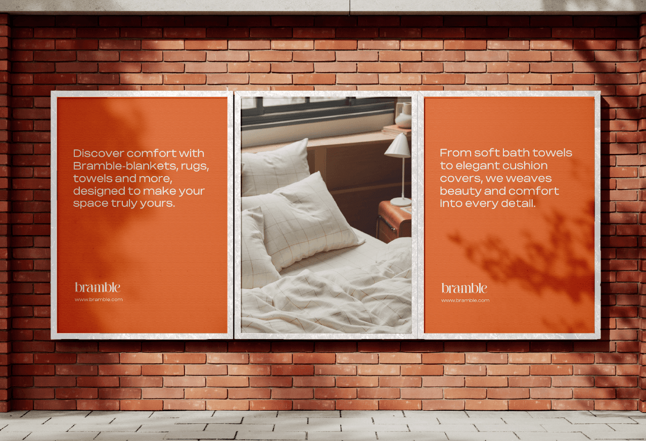 For Bramble, my goal was to craft a brand that feels cozy, timeless, and effortlessly elegant. I focused on a warm, earthy color palette and soft, hand-drawn illustrations to capture the essence of comfort and relaxation. My process involved balancing minimal layouts with rich textures, ensuring the design feels both refined and inviting. From packaging to brand touchpoints, every element was created to evoke a sense of warmth, making Bramble a brand that feels like home.