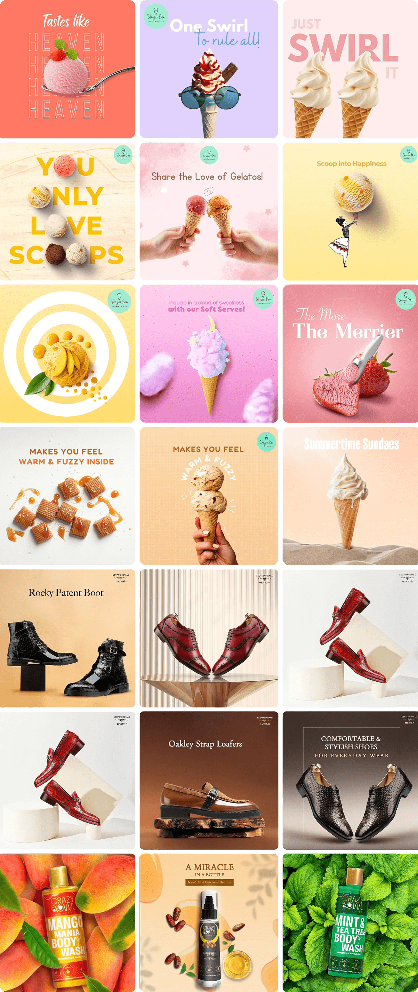 I’ve designed social media content for skincare, cosmetics, and ice cream brands, tailoring each to their unique identity. From clean and minimal aesthetics for skincare to bold, playful visuals for ice cream, every design is crafted to enhance engagement and reinforce brand personality. My focus is on creating eye-catching, cohesive content that resonates with the audience and brings the brand’s story to life.