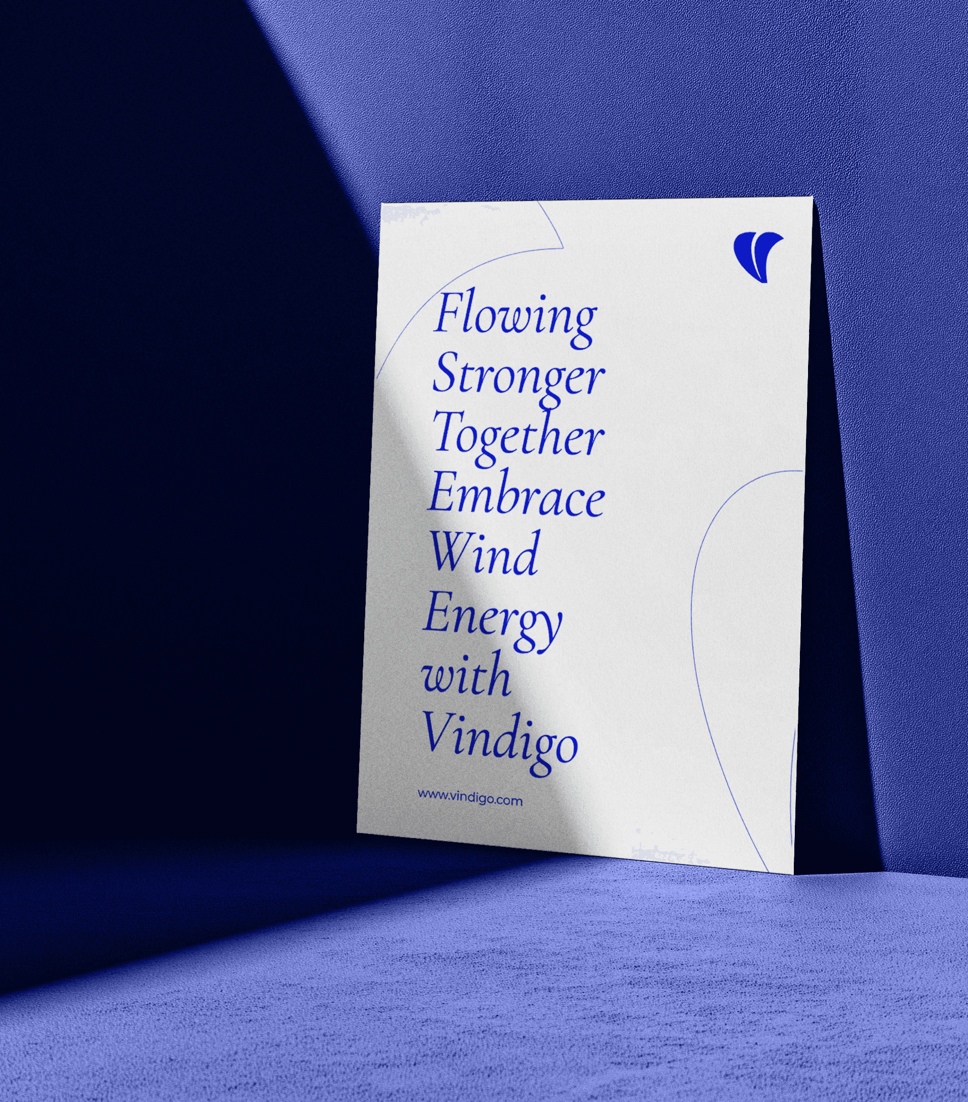 Vindigo is a wind energy brand driving the future of sustainable power. Vindigo’s design embodies the energy and movement of wind power, blending boldness with fluidity. The custom typography, with its sweeping curves and strong forms, mirrors the force of the wind, while the deep blue palette conveys reliability, innovation, and a connection to the sky. The logomark, inspired by turbine blades in motion, reinforces the brand’s commitment to sustainability and progress. Every element, from the dynamic layouts to the refined visual language, reflects Vindigo’s mission to harness the wind for a cleaner, more powerful future.