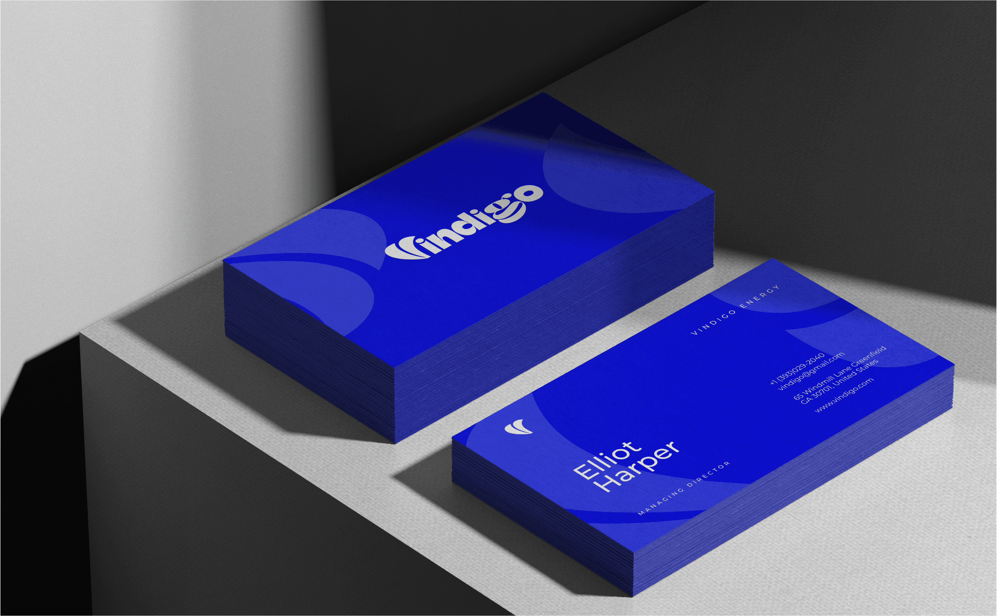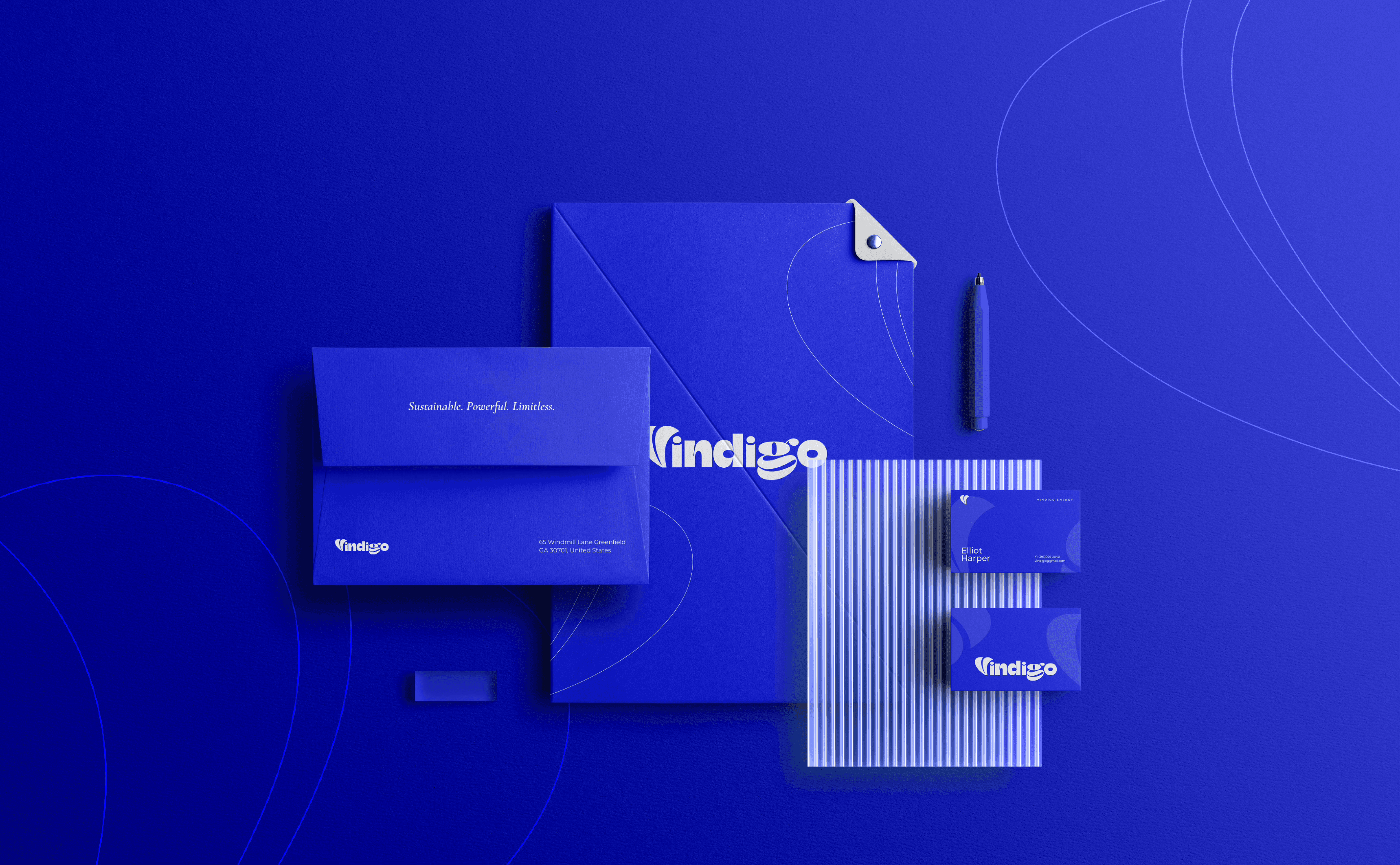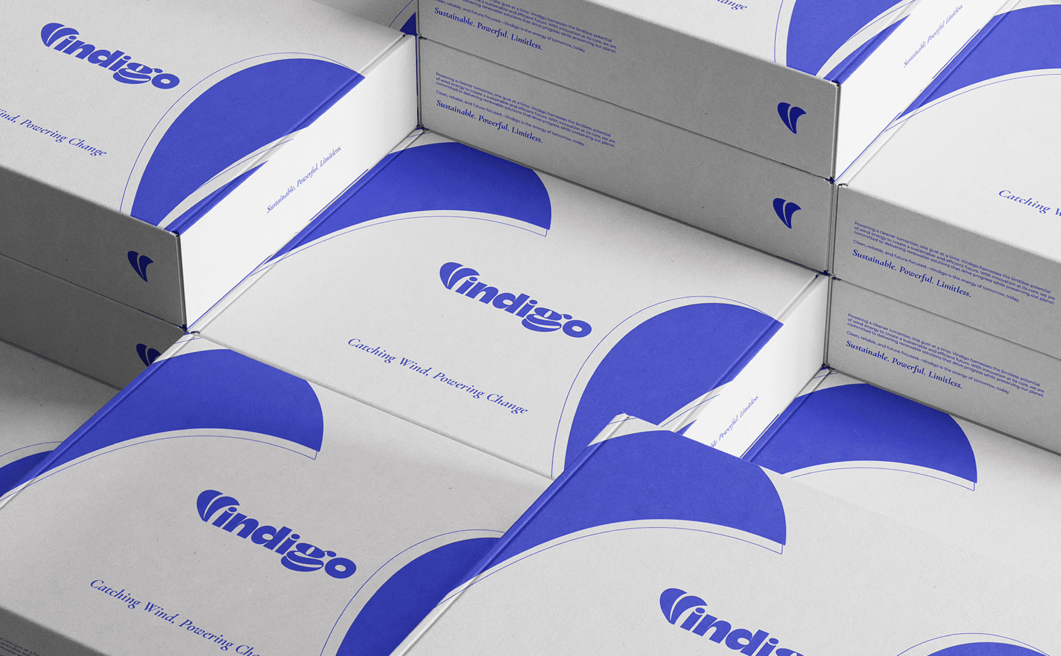 Vindigo is a brand identity for a sustainable energy company specializing in windmills. The visual core of the brand is a fluid, kinetic logo mark inspired by the constant motion of a turbine. Utilizing a bright, energetic palette and organic forms, the design communicates the "flow" of clean energy, positioning the brand as a vibrant and forward-thinking leader in the renewable sector.